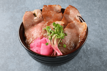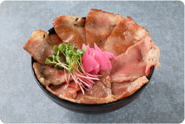 通常サイズの倍の量の飛騨牛ロースがのった、ふっくらご飯と絶妙に調和する贅沢丼です。