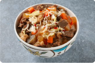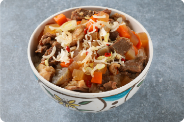 じっくり煮込んだ飛騨牛の柔らかなスジが、旨みたっぷりの煮汁でご飯に染み渡る、贅沢な煮込み丼です。